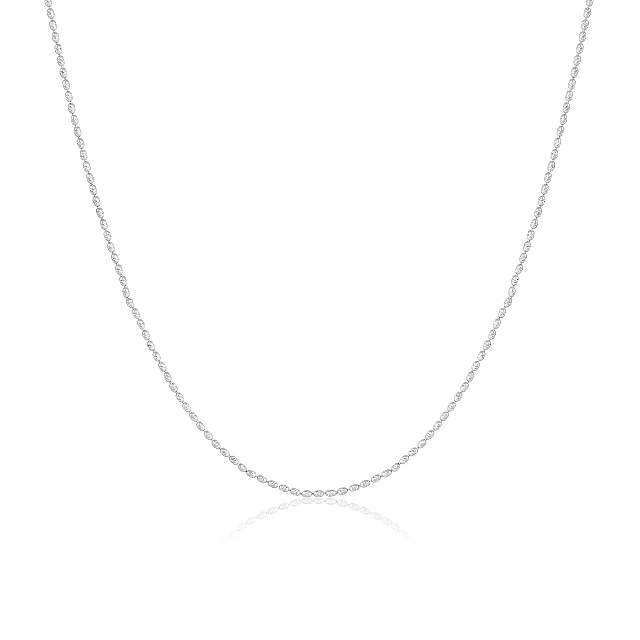 This is a platinum chain designed for women. The elongated platinum beads make this piece a stylish addition to your wardrobe.