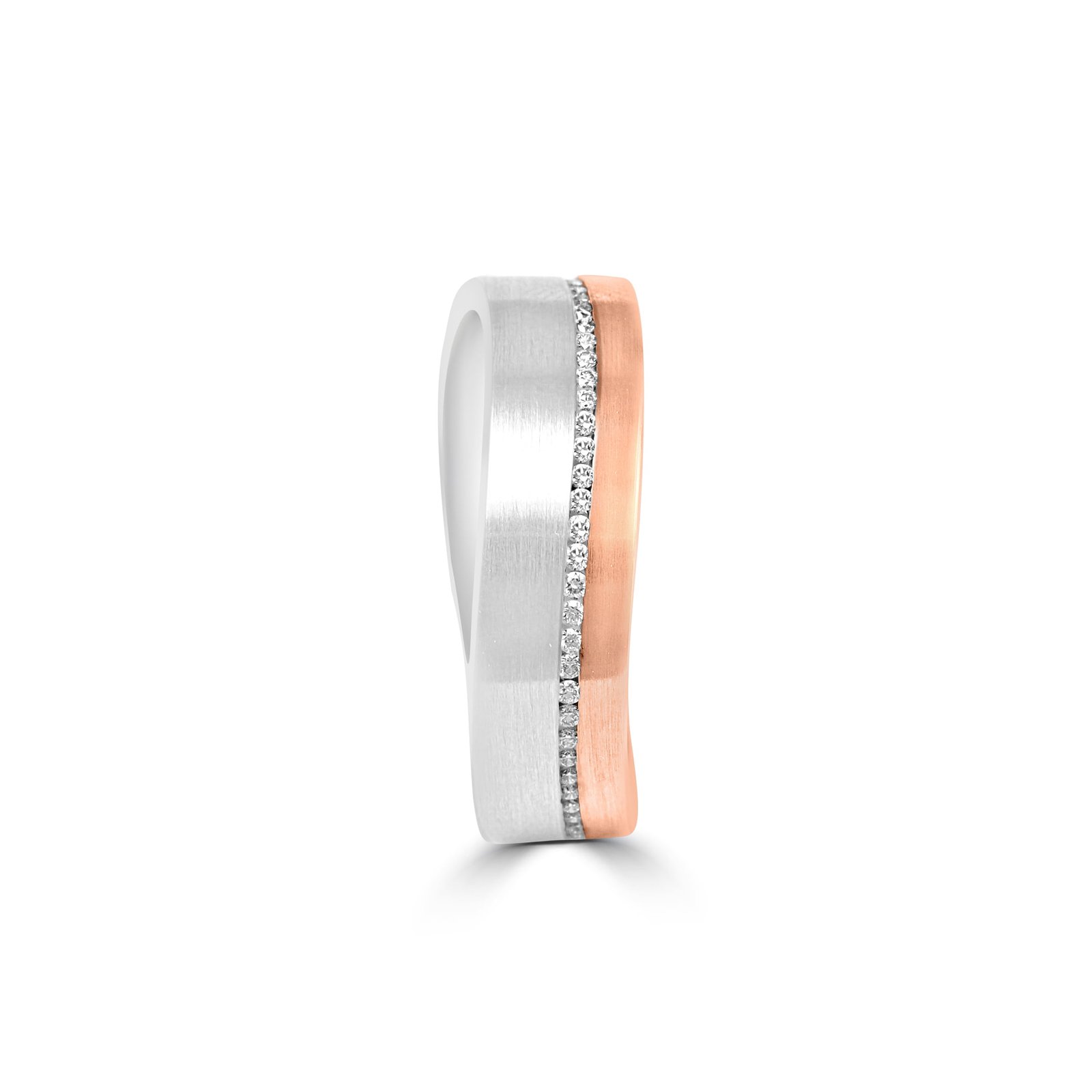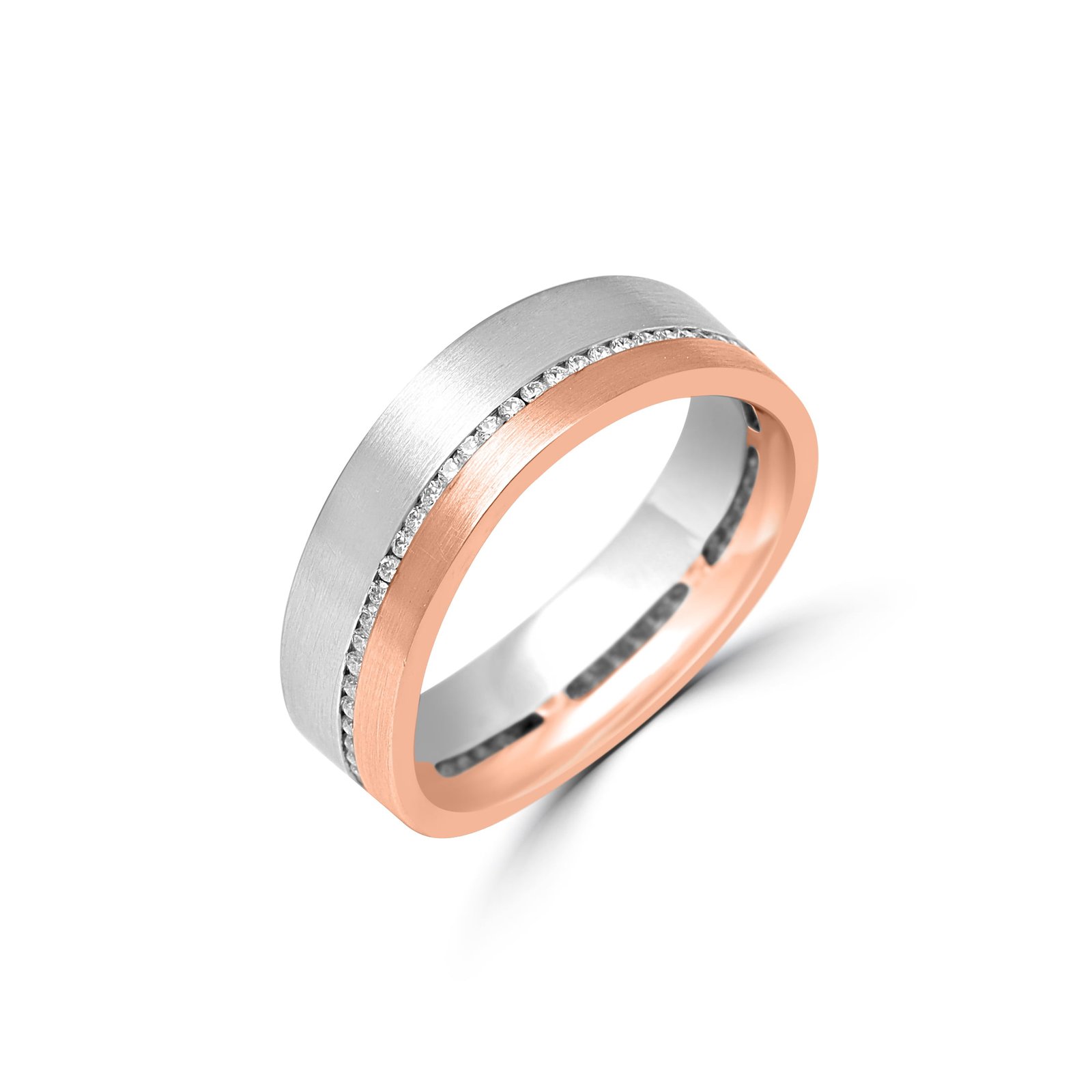 This simple gold and platinum fusion ring with a band of sparkling diamonds make for a classy choice.